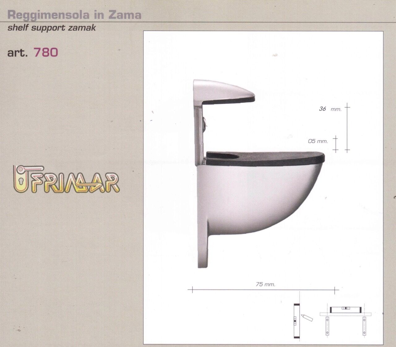 Larghezza: Spessore mensola 5/36 mm.