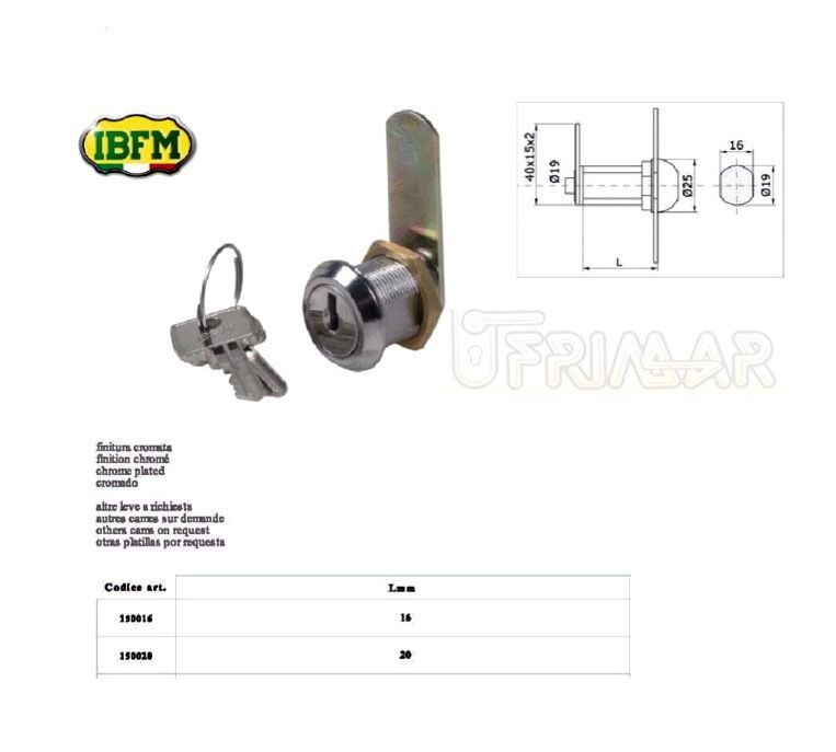 SERRATURA A CILINDRO CON LEVETTA D.19 LUNGHEZZA mm.16/20 PER ANTINE E CASSETTI