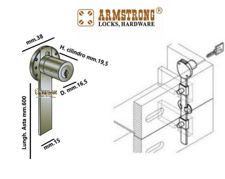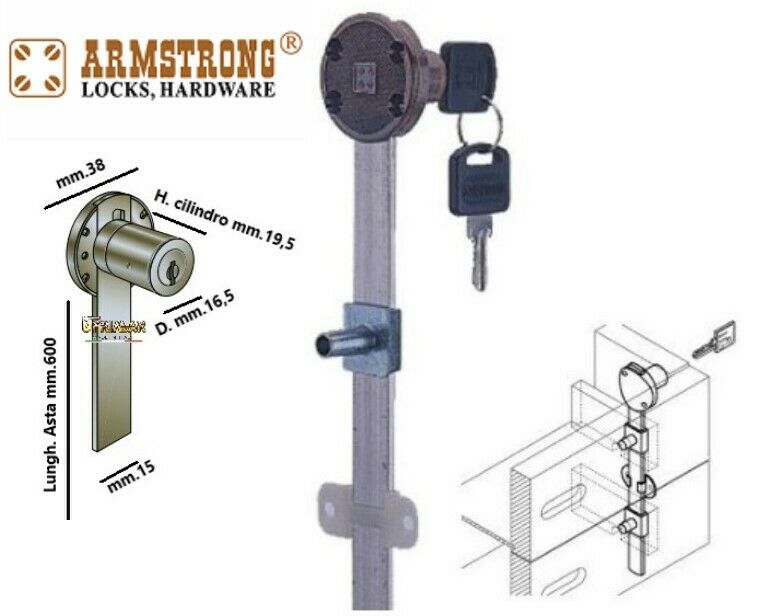 SERRATURA CASSETTI MULTIPLI D.16,5 H.19,5 ASTA mm.600 CHIUSURA CENTRALIZZATA 3 C