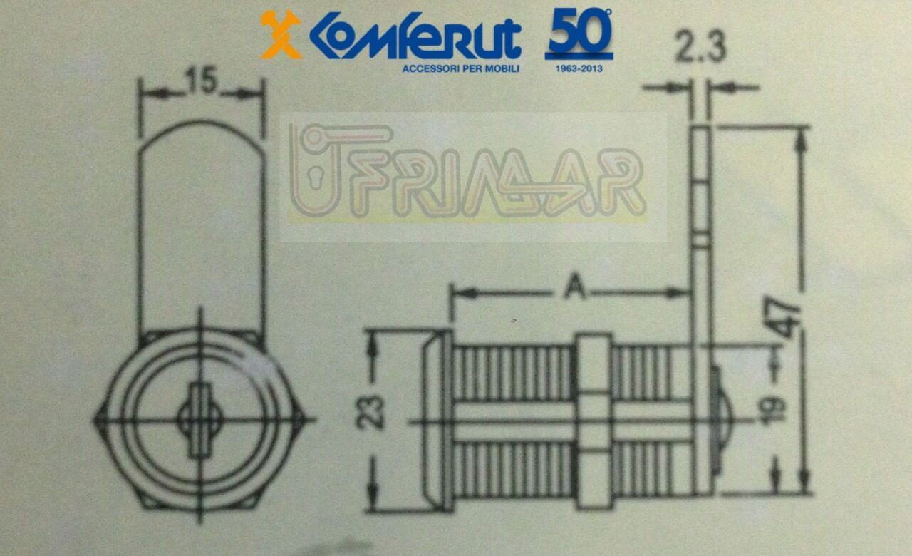 SERRATURA A CILINDRETTO CON LEVETTA PER CASSETTI / ANTINE ETC.. D.mm.19 LUNGHEZZA mm.16.