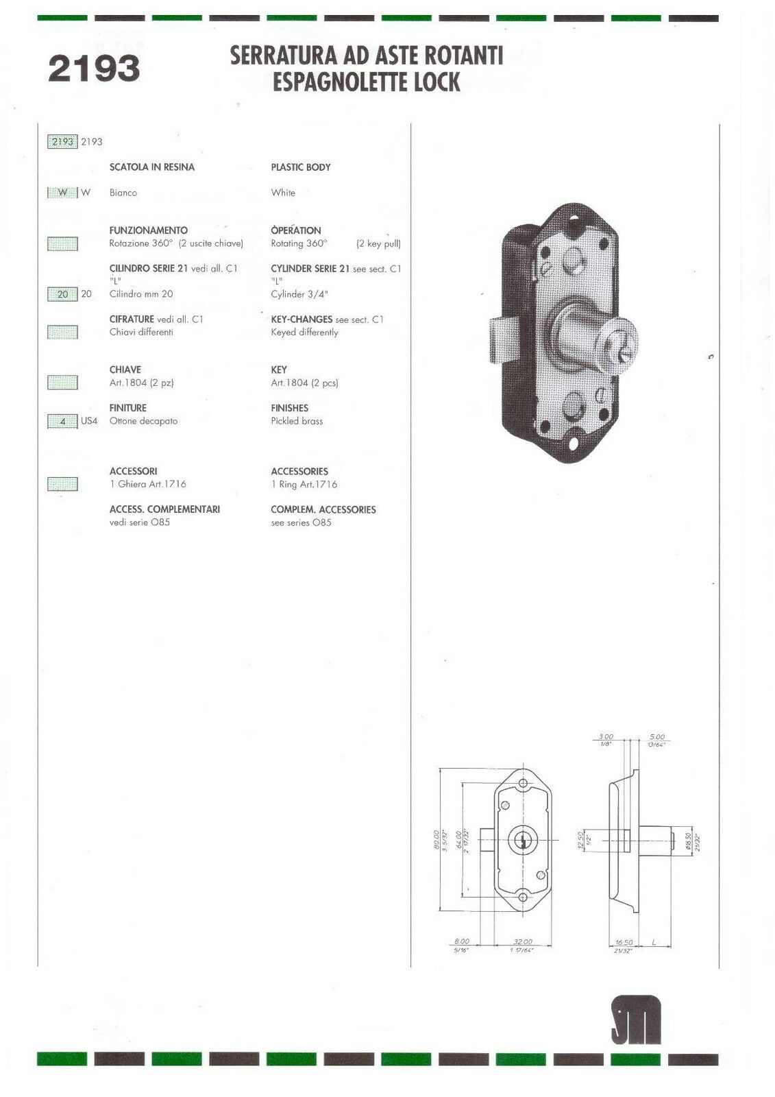 SERRATURA MERONI ASTE ROTANTI 2293 DA APPLICARE CON CILINDRO H.mm.20 BIANCA