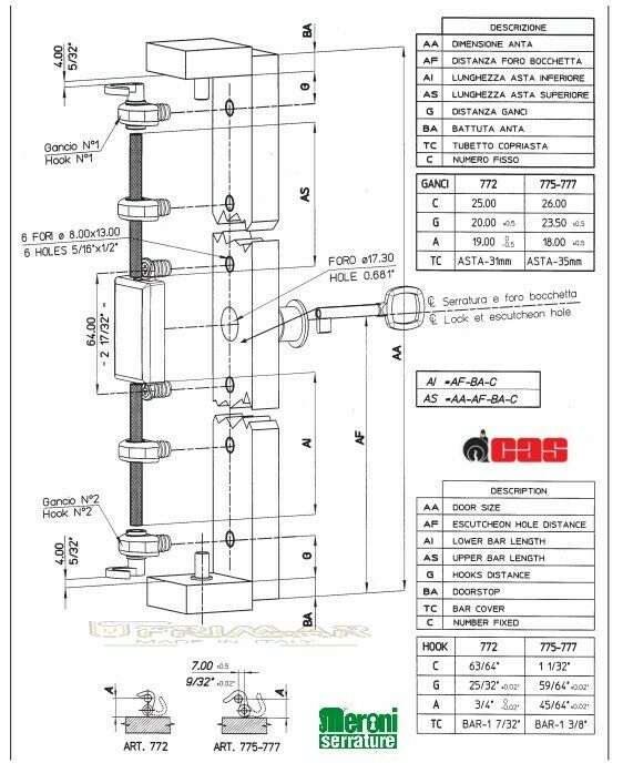 SERRATURA MERONI ASTE ROTANTI DA APPLICARE CON E SENZA ACCESSORI - SENZA MANDATA CENTRALE - AMBIDESTRA