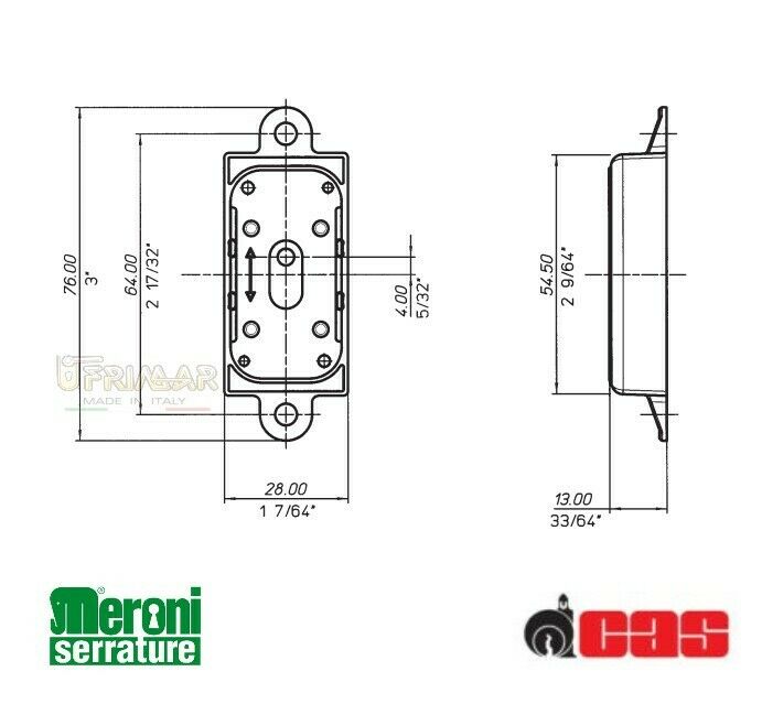 Serratura Meroni Cas Aste Rotanti senza mandata centrale M86R M98N 100223NN