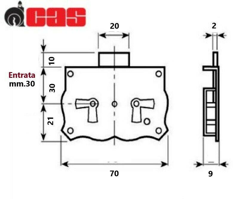 SERRATURA PER MOBILI ANTICHI Entrata mm.30 CAS CASSA ESTERNA A REDOSSO NERA