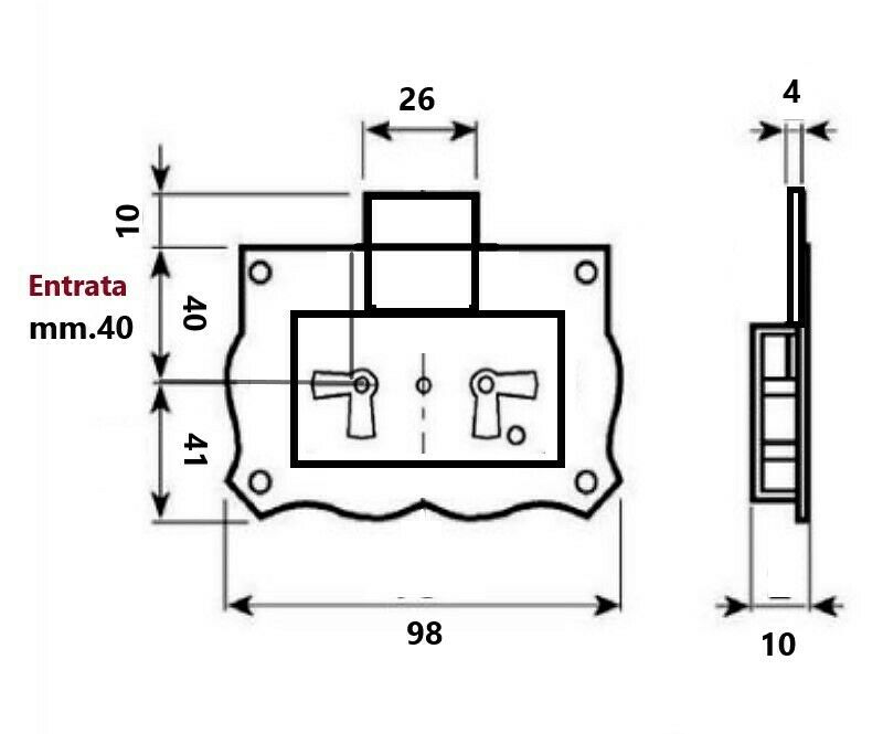 SERRATURA PER MOBILI ANTICHI Entrata mm.40 CASSA INCASSO 572 FASEM AMBIDESTRA