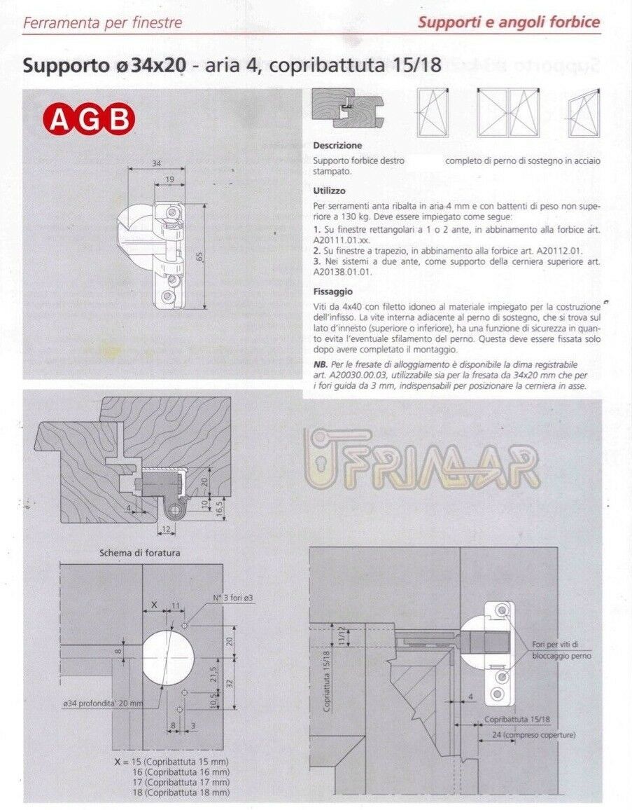 Supporto Cerniera AGB cod.A400410102 Aria mm.4 SINISTRO B.mm.15/18 anta Kg.130